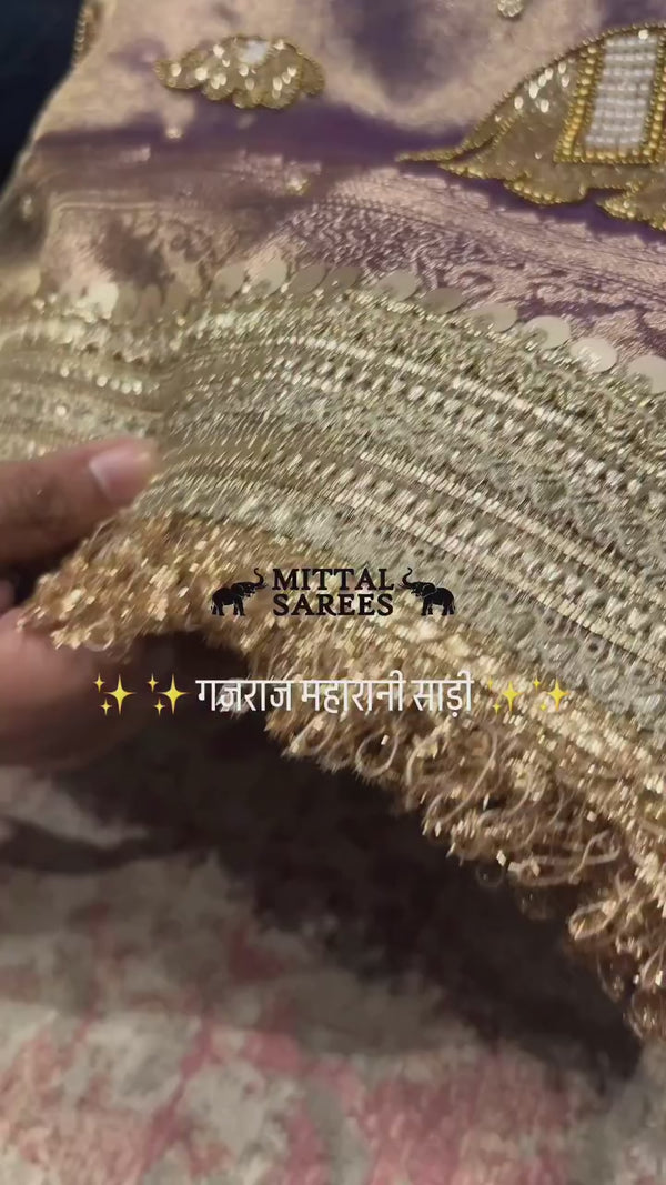 PURPLE SAREE WITH ELEPHANT MOTIFS & HEAVY ZARI BOR ...