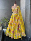 This elegant lehenga set features a blouse with intricate embroidery, a long, flowing skirt adorned with beautiful floral patterns, and a matching dupatta draped gracefully over one shoulder. The detailed craftsmanship enhances the allure of this traditional attire, making it ideal for festive occasions and celebrations. Its timeless design and exquisite details offer a perfect blend of sophistication and grace, ensuring you make a statement wherever you go