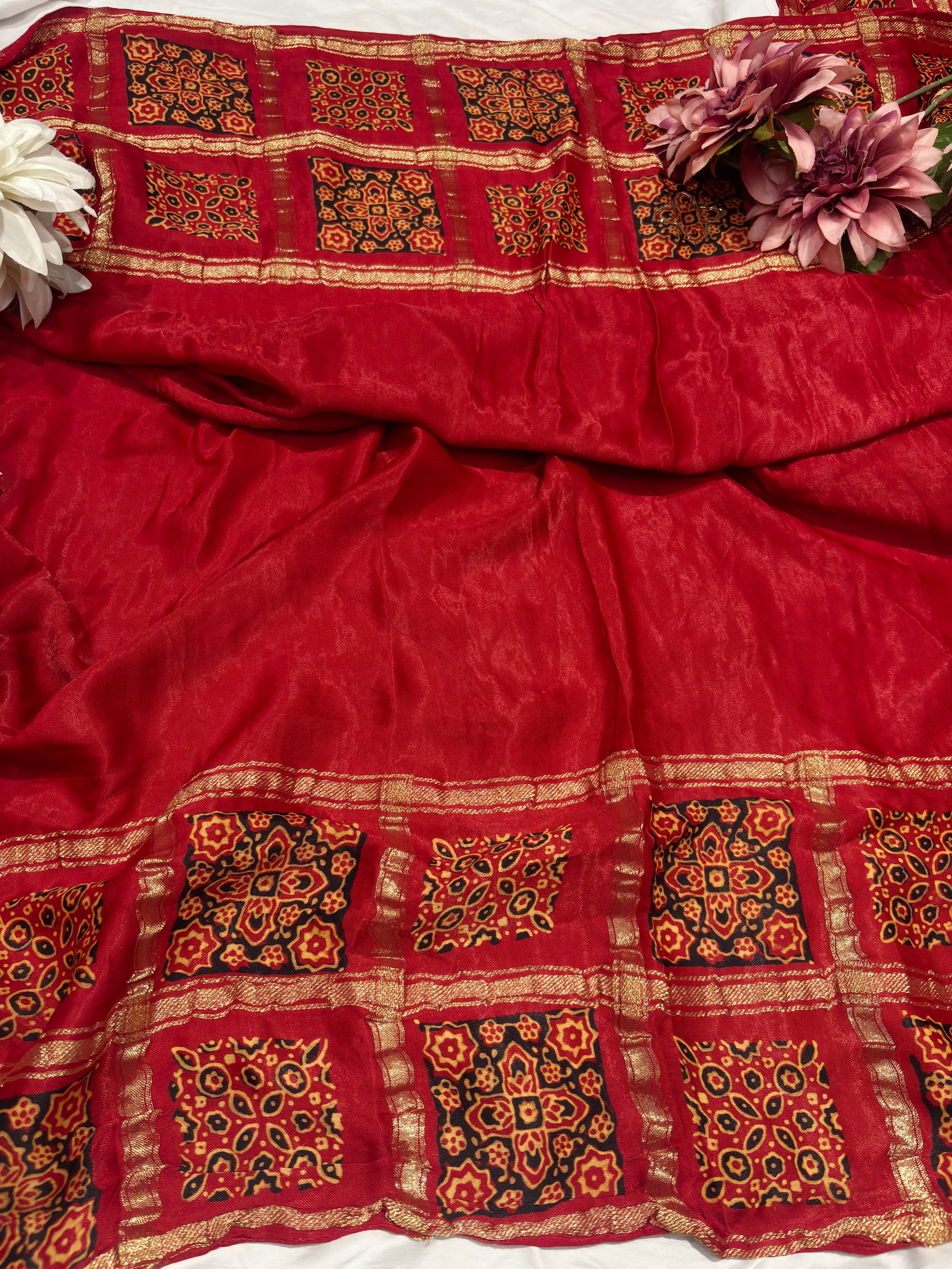 Add timeless elegance to your collection with this classic red saree, beautifully designed with traditional ethnic prints and intricate motifs. The saree features a rich golden border that enhances its royal appeal, along with detailed patterns on the pallu for a graceful finish. Lightweight and comfortable, it’s perfect for festive occasions, daily ethnic wear, or cultural events. Style it with minimal jewelry for a sophisticated traditional look.