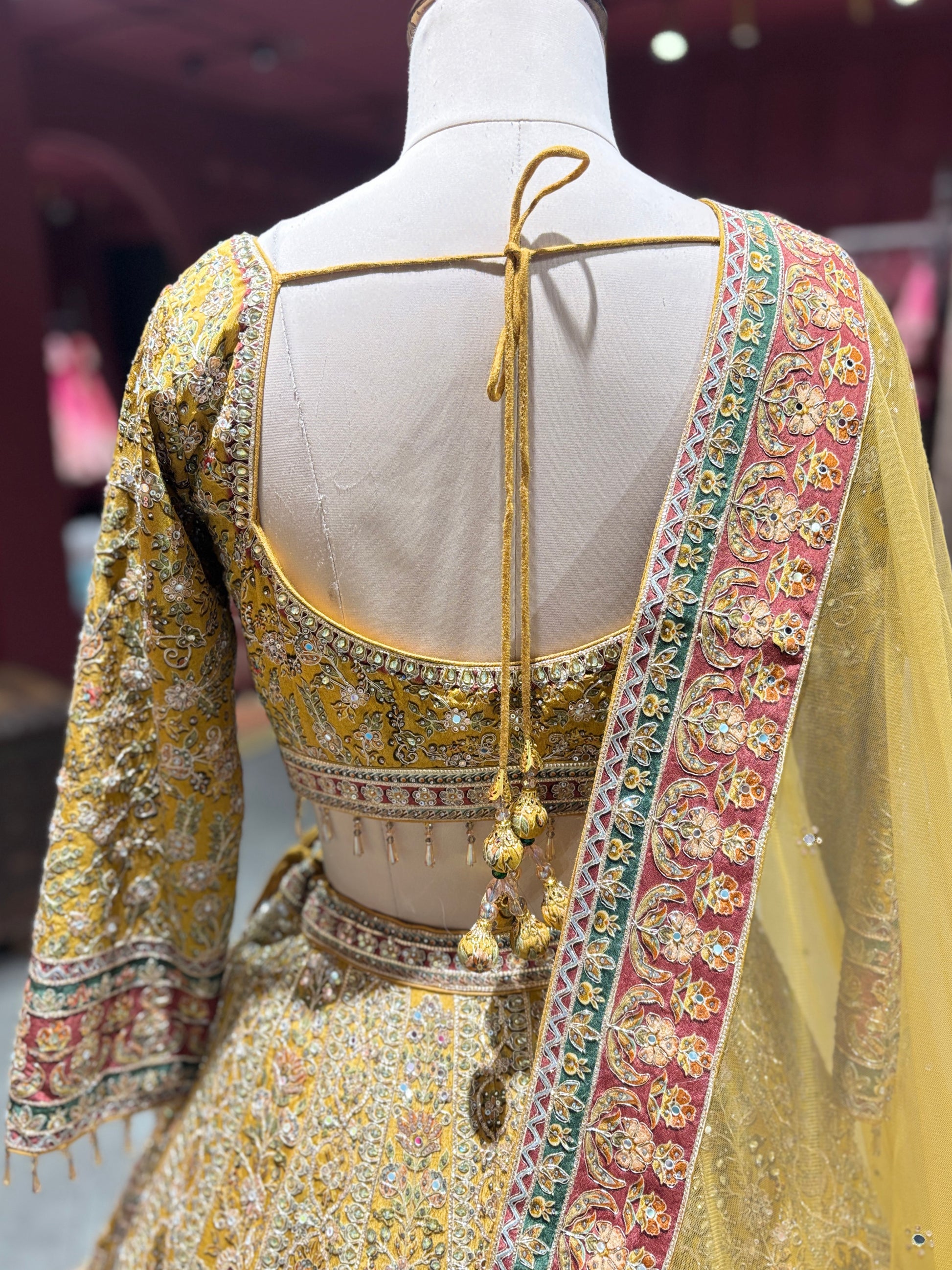 Yellow Heavy Embroidered Lehenga with Full-Sleeve Blouse